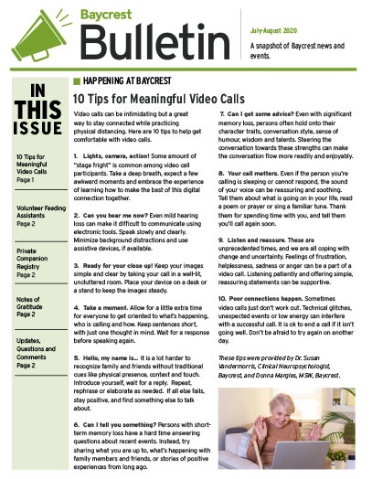 News & Media > News > Baycrest Bulletin Baycrest Bulletin Here you will find current and previous editions of the Baycrest Bulletin. All News Annual ReportBaycrestBaycrest BulletinBaycrest Global SolutionsBaycrest Innovation OfficeCOVID-19 ResourcesEducationFoundationRecognizing Our StaffResearch June 02, 2021 Baycrest Bulletin - June 2021 Baycrest Bulletin - June 2021. A snapshot of Baycrest news and events. Read More May 01, 2021 Baycrest Bulletin - May 2021 Baycrest Bulletin - May 2021. A snapshot of Baycrest news and events. Read More March 01, 2021 Baycrest Bulletin - March 2021 Baycrest Bulletin - March 2021. A snapshot of Baycrest news and events. Read More January 28, 2021 Baycrest Bulletin - February 2021 Baycrest Bulletin - February 2021. A snapshot of Baycrest news and events. Read More January 08, 2021 Baycrest Bulletin - January 2021 Baycrest Bulletin - January 2021. A snapshot of Baycrest news and events. Read More December 01, 2020 Baycrest Bulletin - December 2020 Baycrest Bulletin - December 2020. A snapshot of Baycrest news and events. Read More November 09, 2020 Baycrest Bulletin - November 2020 Baycrest Bulletin - November 2020. A snapshot of Baycrest news and events. Read More October 15, 2020 Baycrest Bulletin - October 2020 Baycrest Bulletin - October 2020. A snapshot of Baycrest news and events. Read More August 01, 2020 Baycrest Bulletin - August 2020 Baycrest Bulletin - August 2020. A snapshot of Baycrest news and events. Read More June 08, 2020 Baycrest Bulletin - June 2020 Baycrest Bulletin - June 2020. A snapshot of Baycrest news and events. Read More Displaying results 51-60 (of 63) |< < 1 - 2 - 3 - 4 - 5 - 6 - 7 > >| Load More