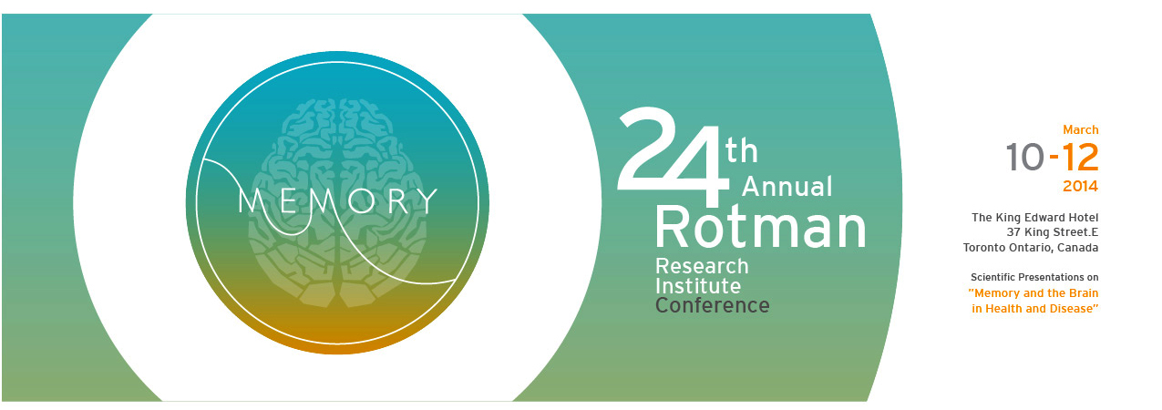 Joining Moscovitch as co-chairs of the 24th annual Rotman Research Institute Conference are Rotman senior scientist Lynn Hasher and scientist Brad Buchsbaum, both affiliated with the University of Toronto. We thank our supporters: HSBC (sustaining sponsor), Ontario Brain Institute (poster awards sponsor) and Logan Brothers (exhibitor).