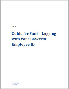 eLearning Resources IMPORTANT NOTICE: The Learning Management System (LMS) can be accessed from any browser or device connected to the internet on the Baycrest campus or offsite by visiting elearning.baycrest.org CLICK HERE TO ACCESS THE LEARNING MANAGEMENT SYSTEM (LMS) Self-Guided Training Documents To view a document select the appropriate guide based on the descriptions below and click the document. To download a copy of a guide, use your mouse and right-click on the document that you need. Choose "Save Target As" and click on the ‘SAVE’ button. For staff with a Baycrest e-mail account Please download this self-guided training document if you have a @baycrest.org e-mail address. View PDF For staff without a Baycrest e-mail accounts Please download this self-guided training document if you DO NOT have an @baycrest.org e-mail address but do have an Employee ID. View PDF Frequently Asked Questions, Resources & User Guides All Staff: How do I log into the LMS? I have a Baycrest email account? Download PDF | Watch Video How do I log into the LMS; I am a Baycrest employee but don’t have a Baycrest email? Download PDF | Watch Video How do I find my mandatory courses? Download PDF | Watch Video How do I start my mandatory courses? Download PDF | Watch Video How do I print a Certificate of Completion? Download PDF | Watch Video How do I know which mandatory courses I have completed? Download PDF | Watch Video How do I search for a course? Download PDF | Watch Video How do I register for a classroom course? Download PDF | Watch Video How do I allow pop-ups in my web browser? Download PDF | Watch Video Managers / Supervisors: How do I find out how my team is doing? Download PDF | Watch Video How do I find out which course(s) my staff member still needs to complete? Download PDF | Watch Video Facilitators/Instructors: How do I request a new classroom course be created in the LMS? Download Form – Please email the completed request form to elearning@baycrest.org. eLearning Process How do I request a new eLearning module? Download Form – Please email completed forms to elearning@baycrest.org eLearning Process Guidebook Supporting Documents Storyboard Template Action Mapping Guide eLearning Module QA Check List eLearning Module Evaluation For all questions, concerns, issues please email your eLearning team at elearning@baycrest.org