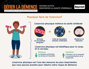 Défier la démence – Épisode 27 : La quête de Jay et Allison pour un cerveau en santé Les facteurs de risque liés au mode de vie, comme le manque de sommeil, l’isolement social et le manque d’exercice, peuvent entraîner des répercussions importantes sur le risque de démence. Les meilleures données disponibles indiquent que, si nous apportions des changements sains pour contrer ces facteurs de risque, nous pourrions réduire d’au moins 45 % les cas de démence à l’échelle de la planète. Dans cet épisode, les animateurs de Défier la démence, Jay Ingram et Allison Sekuler, nous parlent des résolutions qu’ils ont prises pour préserver la santé de leur cerveau. Ils évoquent également les changements qu’ils ont tenté d’apporter dans leur vie, leurs apprentissages, leurs essais et leurs difficultés. Ils nous font part des dernières nouvelles sur la santé du cerveau, dont certaines ont été dévoilées à l’occasion de la récente conférence internationale 2025 de l’Association Alzheimer. Les sujets abordés sont variés : nouveaux essais cliniques, nouvelles analyses sanguines pour le dépistage, grande étude sur le mode de vie, rôle du lithium dans la maladie d’Alzheimer, incidence potentielle de l’exposition à la fumée des feux de forêt sur le risque de démence, vaccin contre le zona, et bien plus encore. Écoutez l’émission à defierlademence.org ou sur la plateforme où vous écoutez vos balados. Épisode 27: Transcription Principaux points à retenir Modifier ses habitudes peut s’avérer difficile. Il n’est pas toujours facile de changer son mode de vie pour renforcer la santé de son cerveau. Selon une étude scientifique, il faut entre 18 et 254 jours pour adopter une nouvelle habitude. Même si le changement est difficile, chaque pas que vous faites est un pas dans la bonne direction. Principales mesures Veillez à prendre des résolutions ou à établir des objectifs simples et réalistes. Essayez de prévoir régulièrement des activités bénéfiques pour la santé du cerveau, comme l’exercice physique. Un programme peut vous aider à tenir vos engagements. Le soutien et l’encouragement de votre famille et de vos amis sont très utiles, mais vous ne devez pas avoir l’impression qu’ils vous forcent la main. Le désir de changer doit venir de vous. Ressources Veillez à prendre des résolutions ou à établir des objectifs simples et réalistes. Essayez de prévoir régulièrement des activités bénéfiques pour la santé du cerveau, comme l’exercice physique. Un programme peut vous aider à tenir vos engagements. Le soutien et l’encouragement de votre famille et de vos amis sont très utiles, mais vous ne devez pas avoir l’impression qu’ils vous forcent la main. Le désir de changer doit venir de vous. Apprenez-en plus sur nos invités Jay Ingram compte plus de 40 ans d’expérience comme écrivain et vulgarisateur scientifique, notamment à l’émission Daily Planet, à Quirks and Quarks, diffusée sur les ondes de CBC Radio, et au Toronto Star. Il est l’auteur de 20 livres. Jay Ingram a reçu la médaille Sandford Fleming du Royal Canadian Institute, la médaille McNeil de la Société royale du Canada pour la sensibilisation du public à la science, le Prix Michael Smith pour la promotion des sciences du Conseil de recherches en sciences naturelles et en génie du Canada, ainsi que la Médaille du jubilé de diamant de la Reine Elizabeth II. Il a été investi de l’Ordre du Canada et s’est vu décerner le prix de rédaction médicale Walter C. Alvarez, de l’American Medical Writers Association. Allison Sekuler (FSEP, FPsyS, FAPS) est présidente et scientifique en chef à l’Académie de recherche et d’éducation Baycrest et au Centre d’innovation sur la santé du cerveau et le vieillissement, soutenu par Baycrest. Ses recherches, qui reposent sur des approches comportementales et la neuro-imagerie, visent à comprendre comment le cerveau traite les informations visuelles et abordent plus particulièrement la perception des visages, le traitement des mouvements, l’apprentissage perceptif, la neuroplasticité, le vieillissement et la neurotechnologie. Son groupe de recherche a été le premier à démontrer de façon concluante que les cerveaux des personnes âgées se « recâblent » pour compenser les changements fonctionnels. Ses recherches cliniques et translationnelles visent à mettre au point des méthodes de prévention, de dépistage et de traitement du déclin sensoriel et cognitif lié à l’âge. Reconnue pour son engagement en faveur des femmes dans le domaine scientifique, elle a reçu de nombreuses distinctions, notamment deux nominations au classement des 100 femmes les plus influentes du Canada, par le Réseau des femmes exécutives.