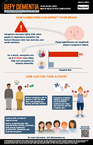 - Being a caregiver can have a significant impact on your brain health. Caregivers of people living with dementia are up to six times more likely to develop dementia themselves.